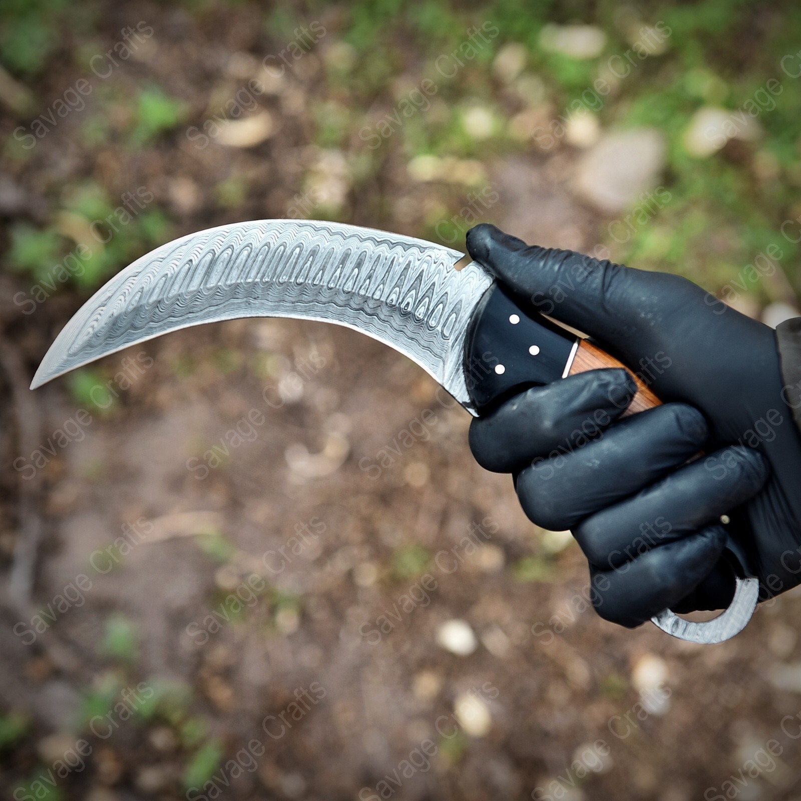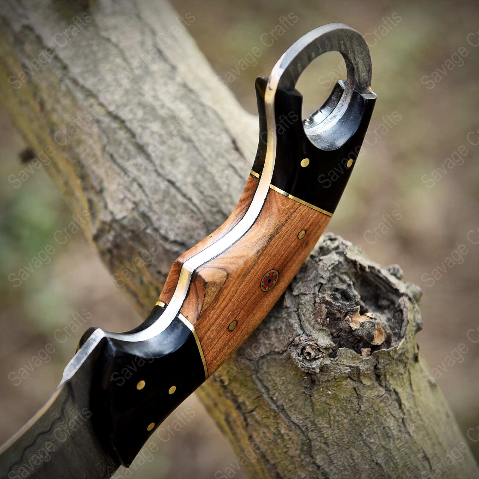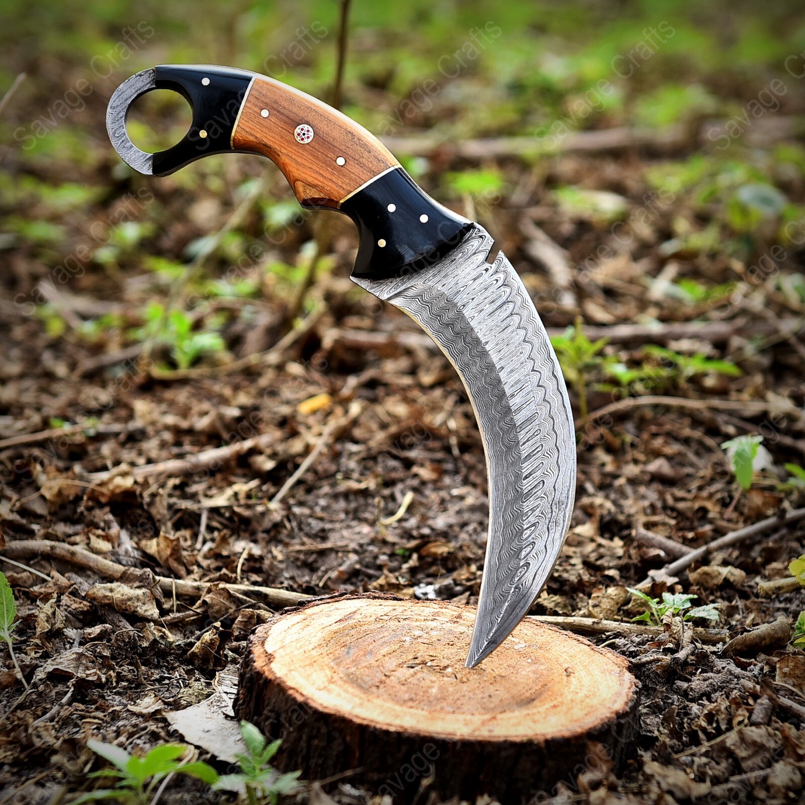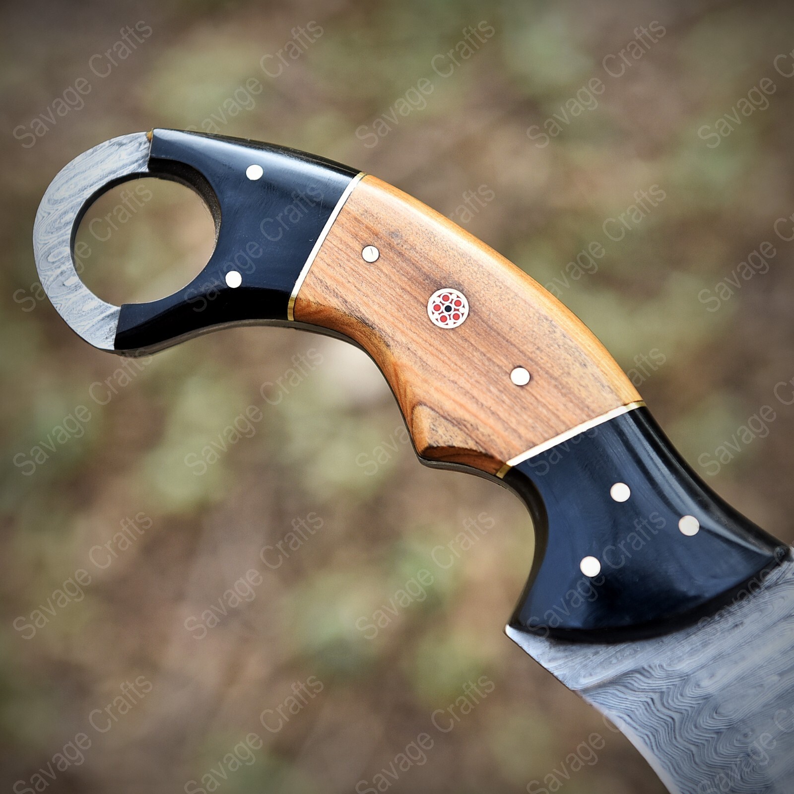 9″ Damascus Karambit Knife – Horn & Wood