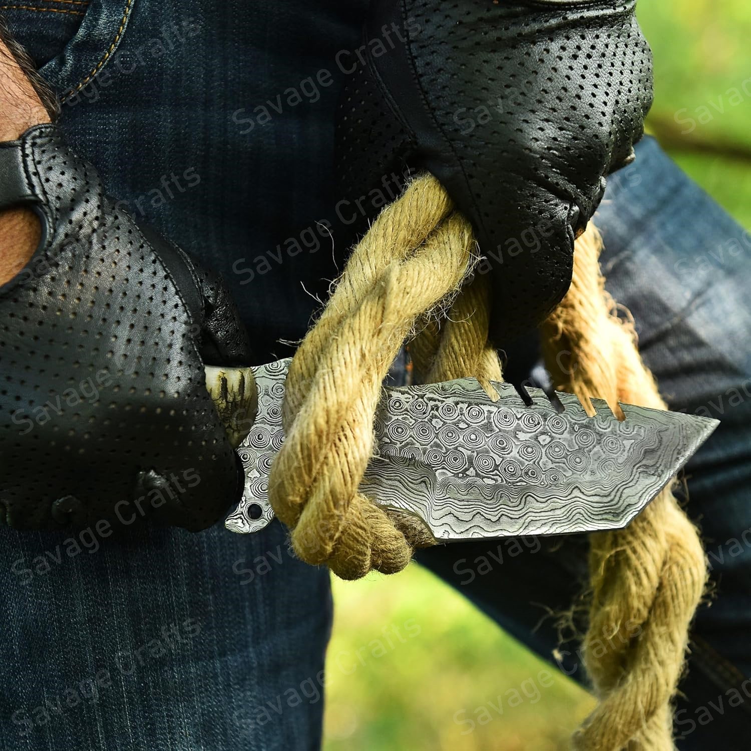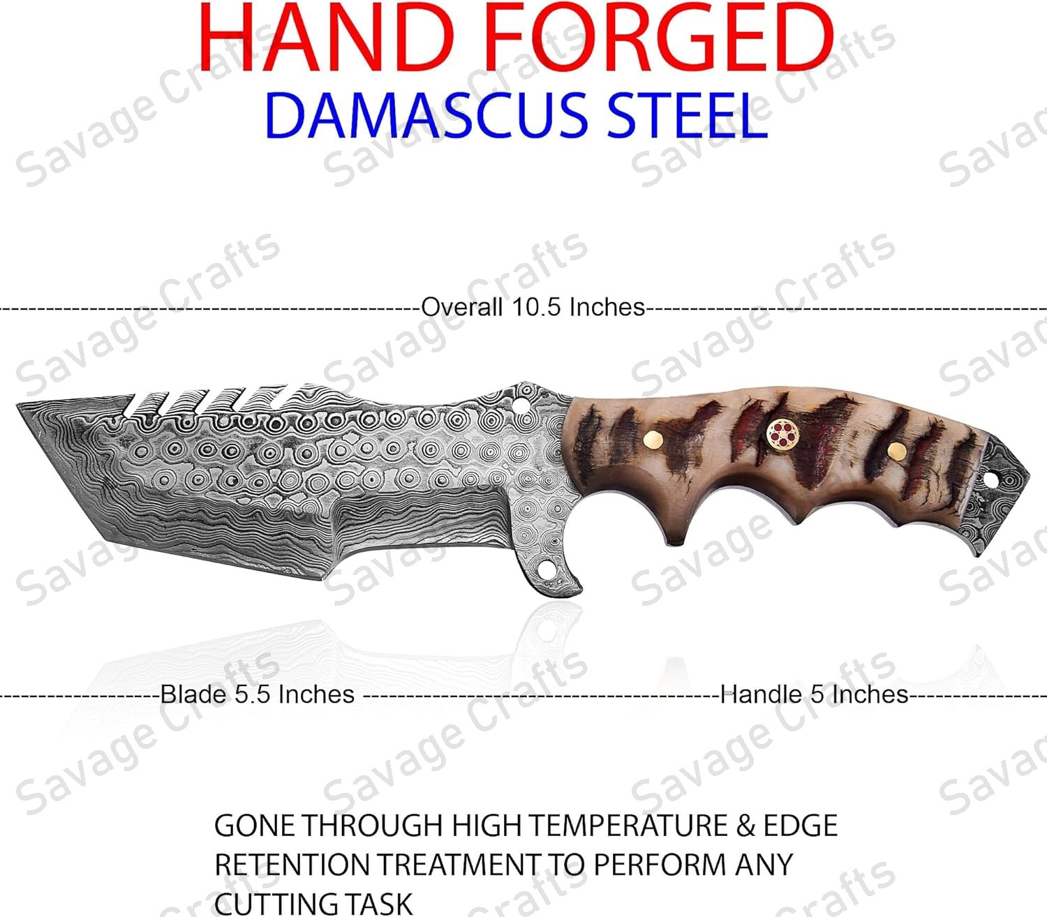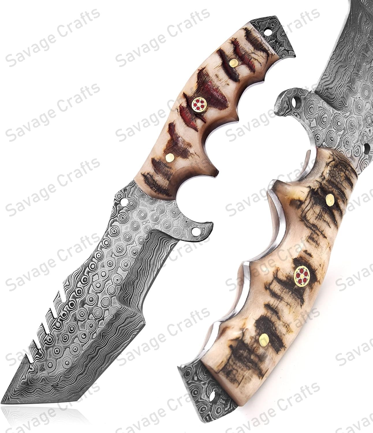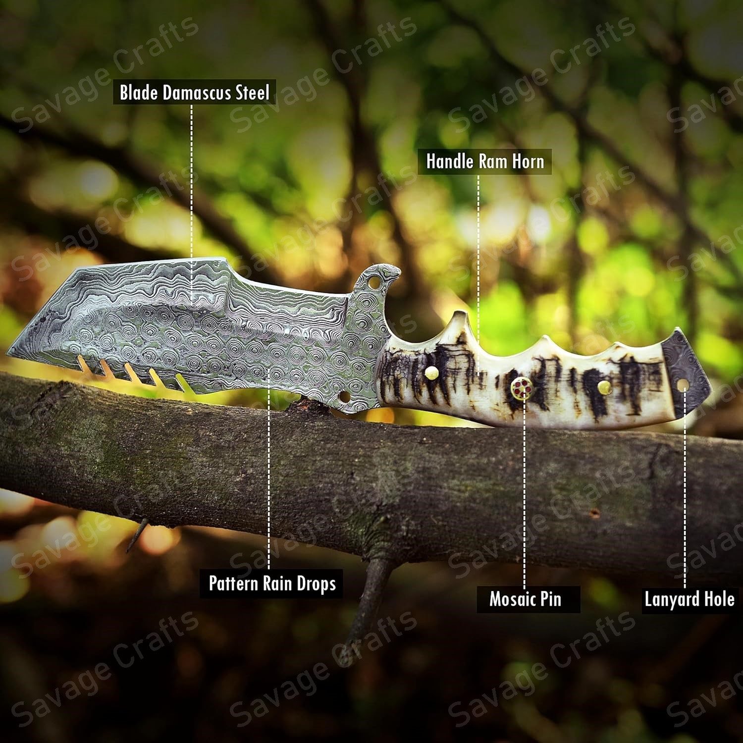 Masterpieces of craftsmanship and function, this Damascus Knife features a limited-edition tracker design built for combined power and durable excellence. The Damascus steel blade not only elevates the aesthetics but also delivers exceptional strength, edge retention, and corrosion resistance—ensuring total reliability in any demanding situation. Whether deep in the wilderness or on a family camping trip, these Tracker knives are dependable companions.