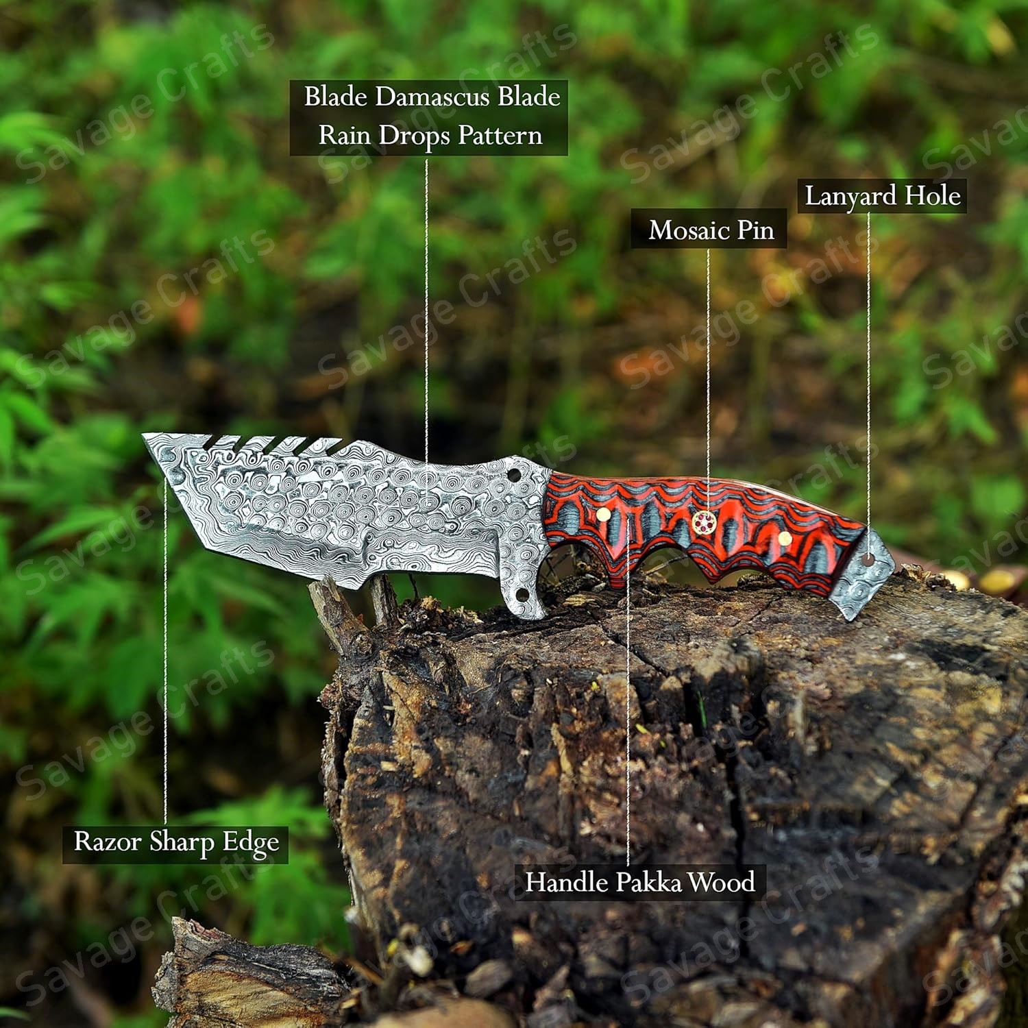 Because each knife is handcrafted using natural materials, the color, Damascus pattern, and overall appearance may vary. The knife you receive will be made with the same care and quality as the one shown, but its look may be slightly different.