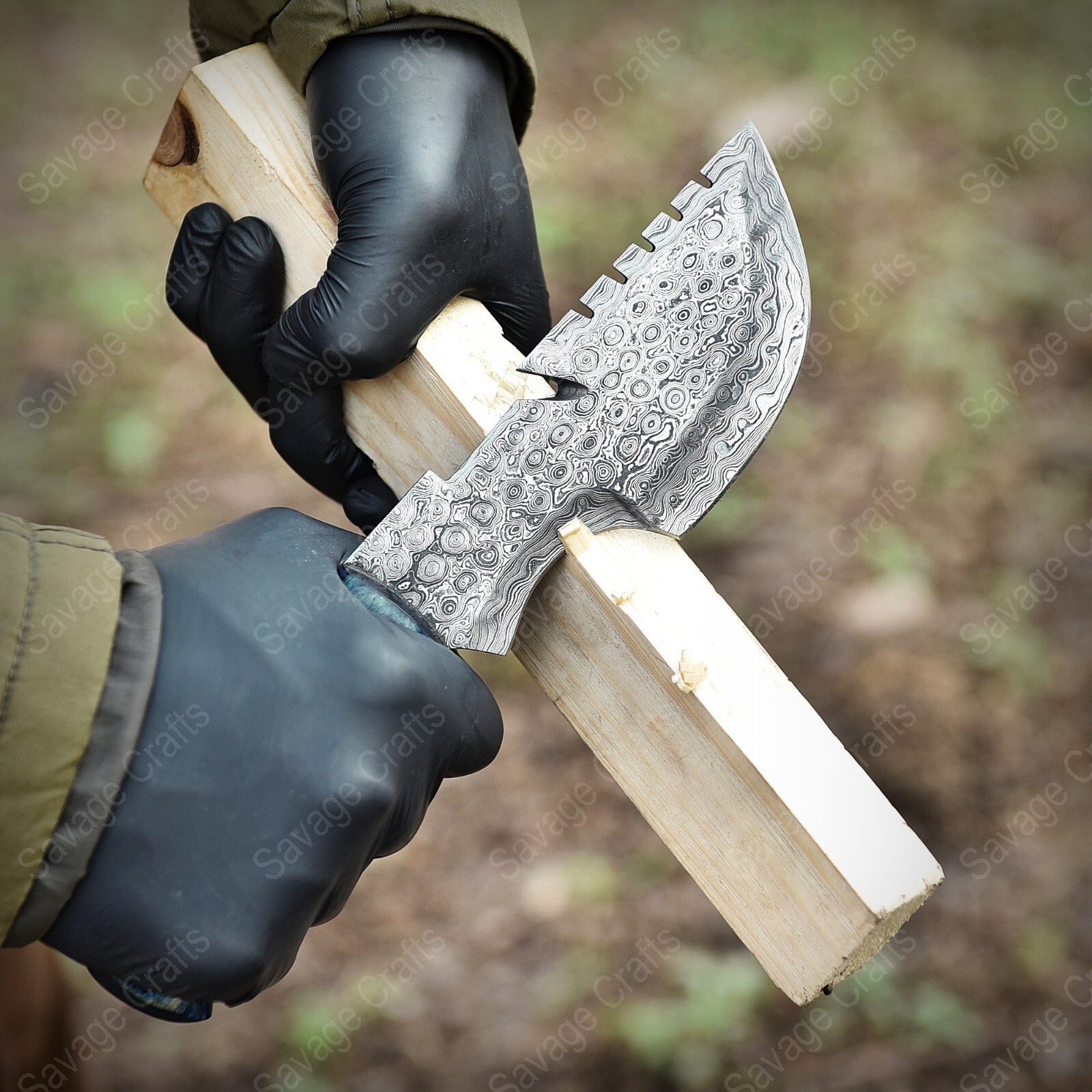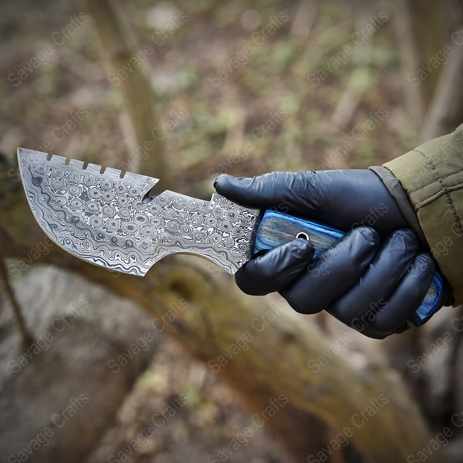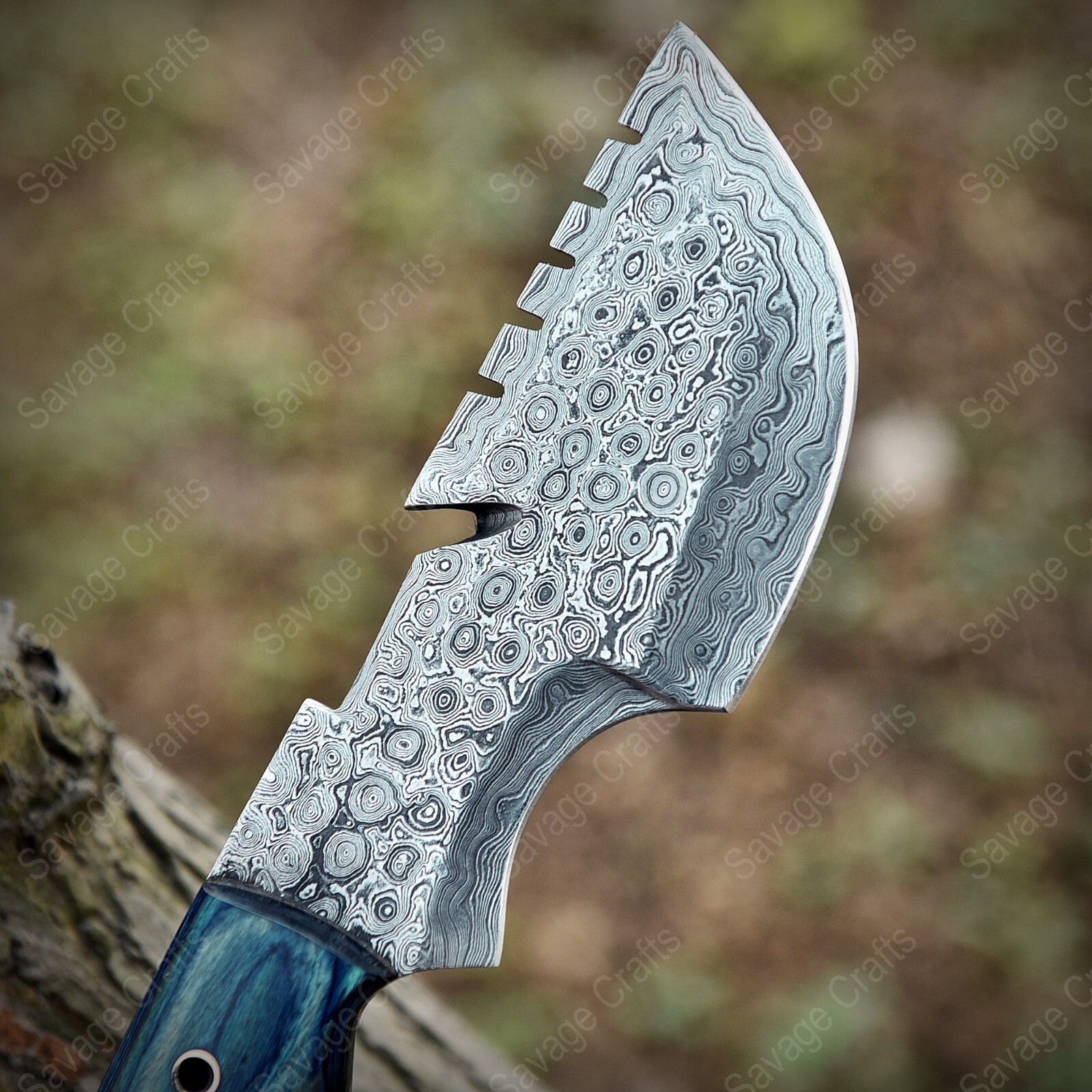Masterpieces of craftsmanship and function, this Damascus Knife features a limited-edition tracker design built for combined power and durable excellence. The Damascus steel blade not only elevates the aesthetics but also delivers exceptional strength, edge retention, and corrosion resistance—ensuring total reliability in any demanding situation. Whether deep in the wilderness or on a family camping trip, these Tracker knives are dependable companions.