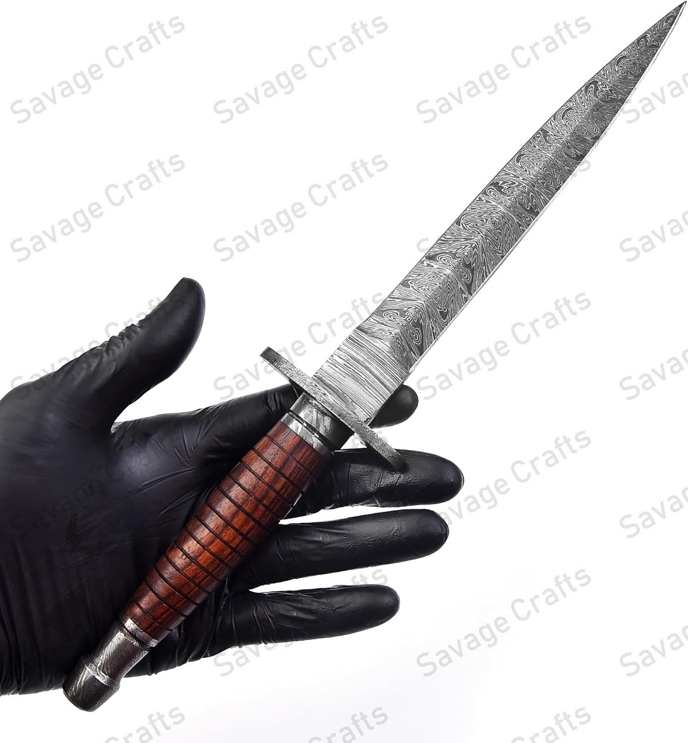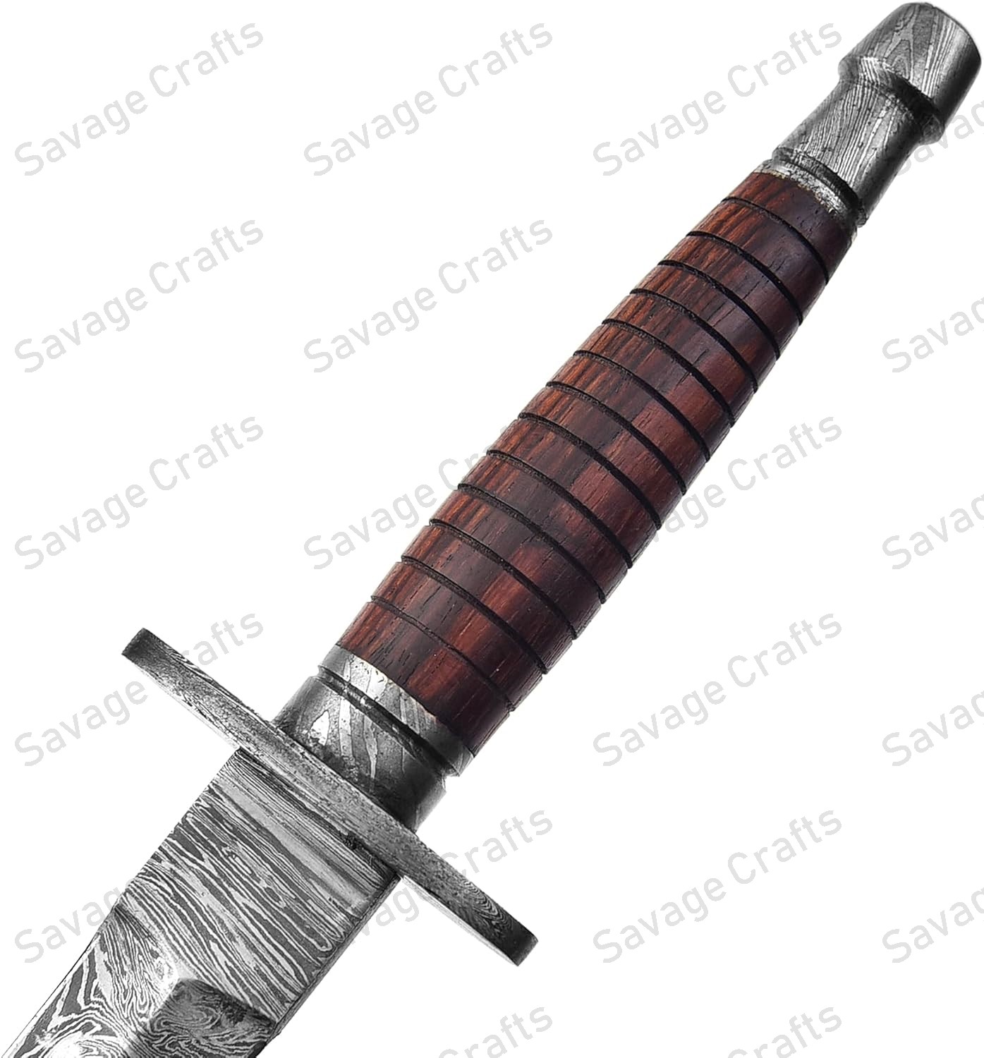 12″ Damascus Steel Stiletto Dagger – Wood Handle