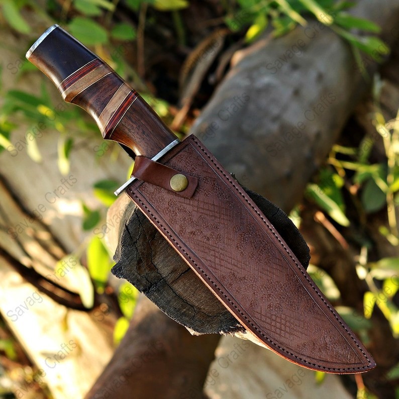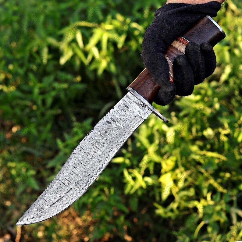 Whether navigating the great outdoors, embarking on a wilderness adventure, or enhancing a fine cutlery collection, this knife exemplifies superior craftsmanship and timeless design. Forged from premium Damascus steel, the blade combines striking aesthetics with exceptional strength, durability, edge retention, and corrosion resistance, ensuring reliable performance in even the most demanding conditions. Its ergonomic handle, meticulously crafted from grained hardwood, provides a secure and comfortable grip for extended use, making it ideal for tasks such as food preparation, carving wood, rope cutting, and crafting survival tools.
