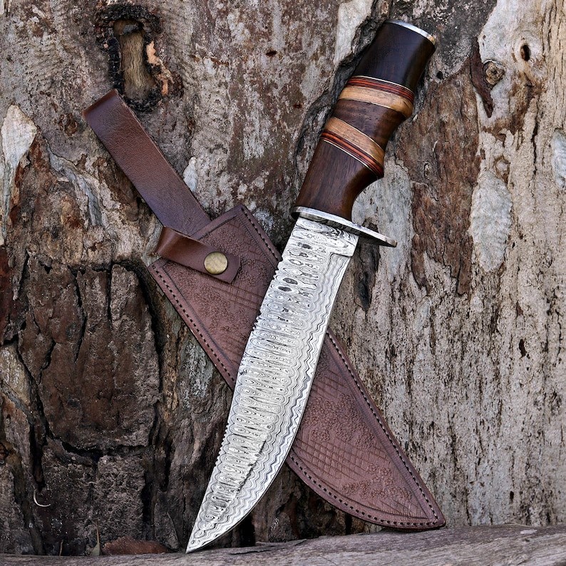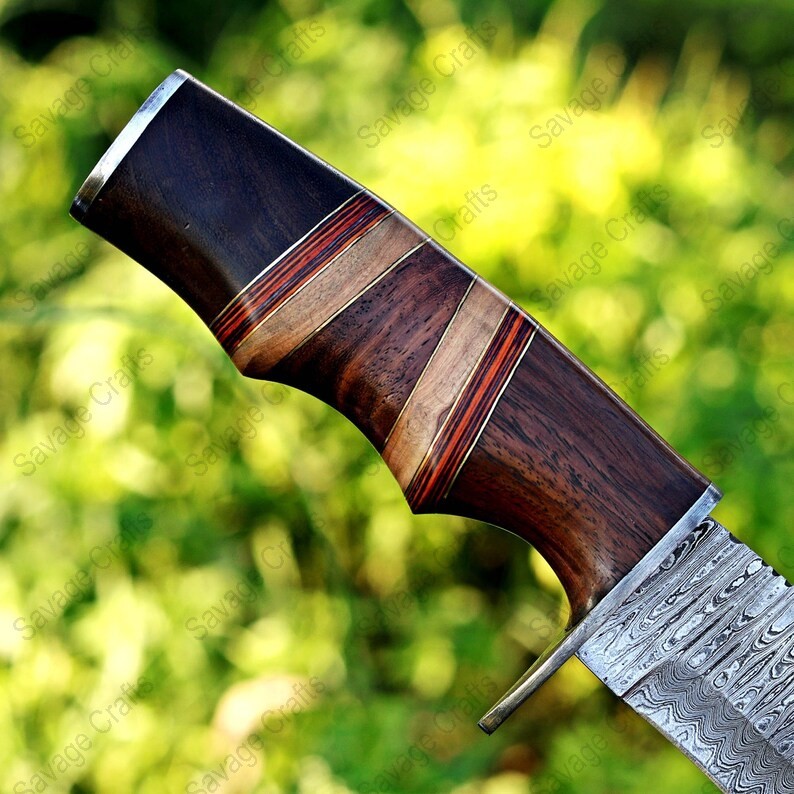 13″ Damascus Steel Bowie Knife –Wood Handle