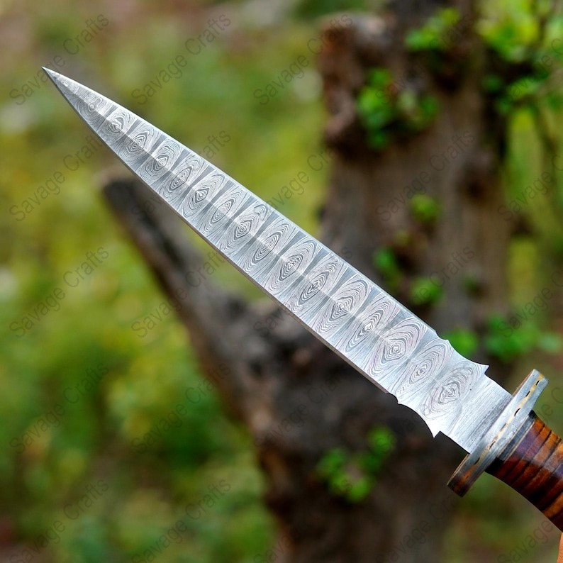 14″ Damascus Steel Dagger – Stacked Leather Handle