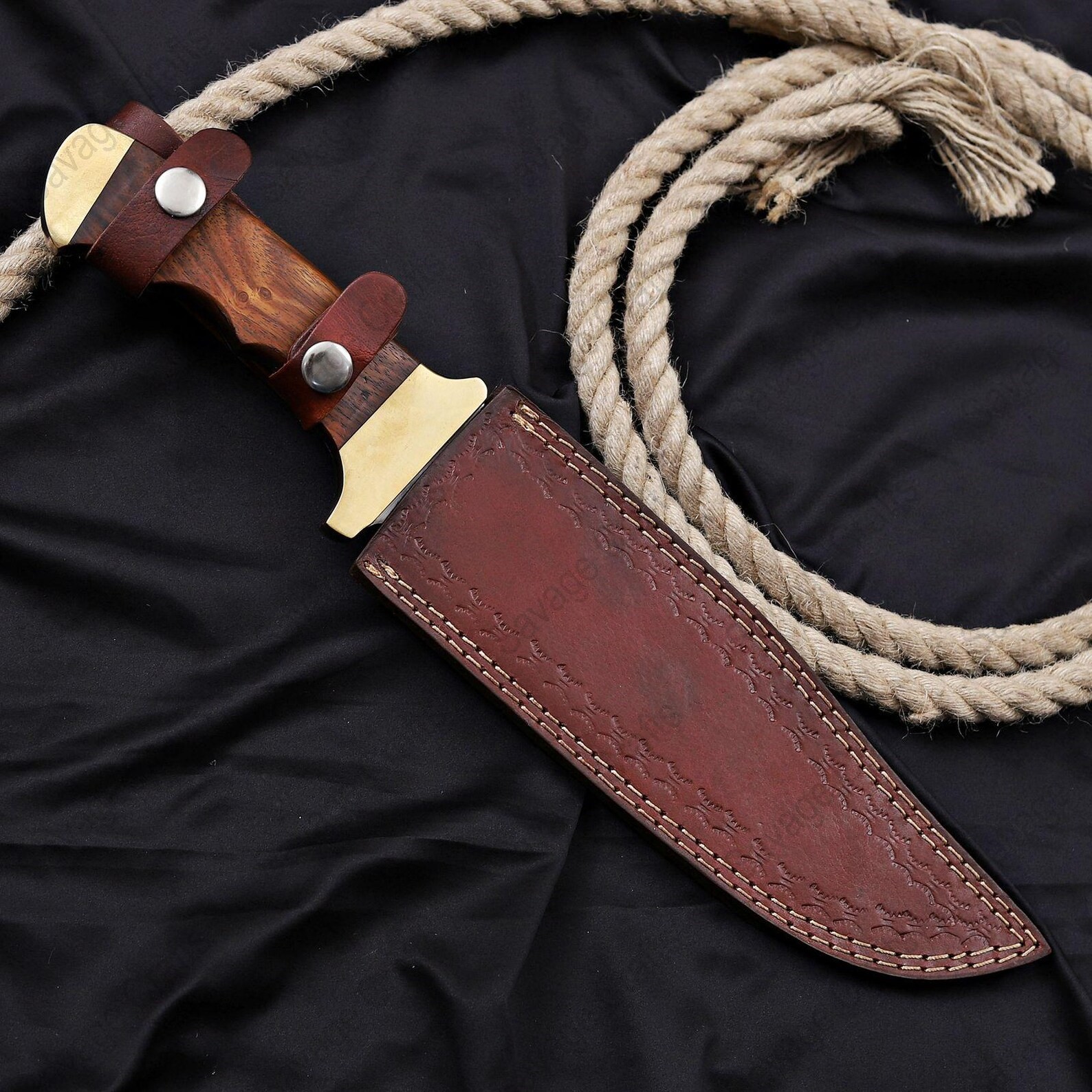 14″ Stainless Steel Hunting Bowie Knife – Wood Handle