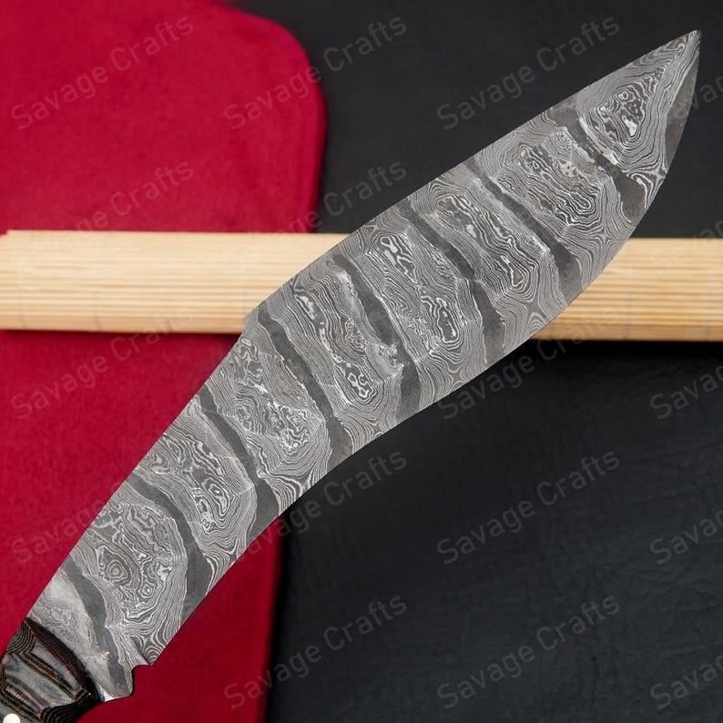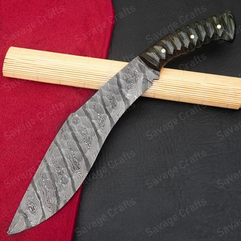 The kukri is a renowned Nepalese blade distinguished by its forward-curving profile, compact yet powerful build, and long-standing legacy as both a utility tool and a battlefield weapon. Traditionally carried by the Gurkhas, it excels in close-quarters use, bushcrafting, and heavy outdoor tasks due to its unique weight distribution, which provides remarkable chopping power with minimal effort. Modern iterations crafted from Damascus steel elevate its performance with superior strength, edge retention, and corrosion resistance, while also offering striking visual patterning.