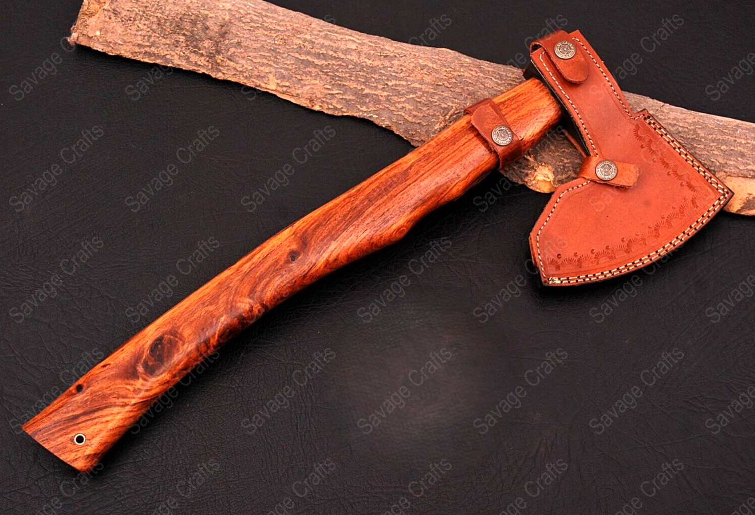 Built for rigorous outdoor use, this axe is engineered to handle the toughest jobs while maintaining the finesse needed for smaller tasks. Savage Crafts designed the blade geometry and handle shape to maximize power, balance, and control, ensuring confident swings whether you’re clearing land, splitting logs, or working around a campsite. Even when not tackling large trees, its ergonomic structure ensures consistent performance and reduces fatigue during extended use.