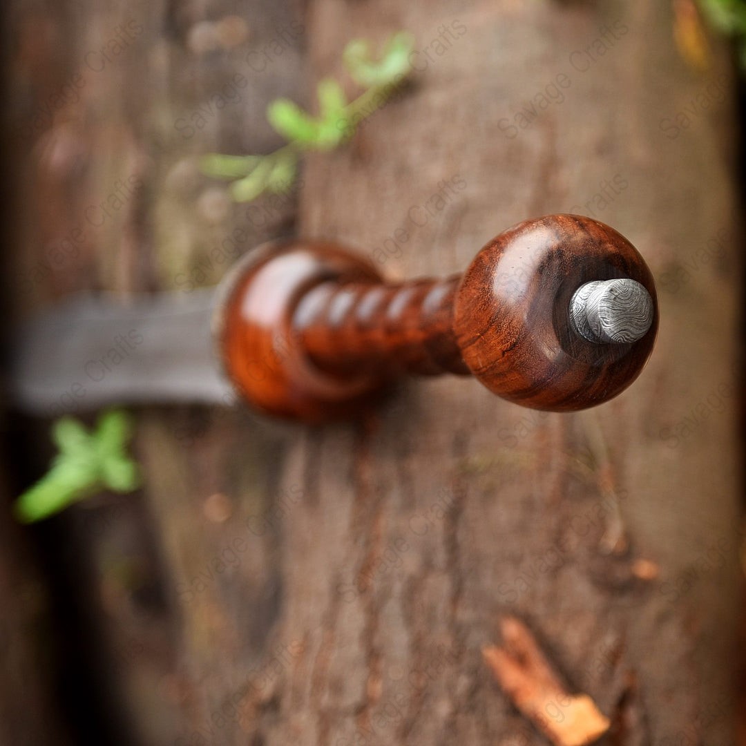 - Handle Material: Damascus File Worked Guard & Pommel, Rose Wood
