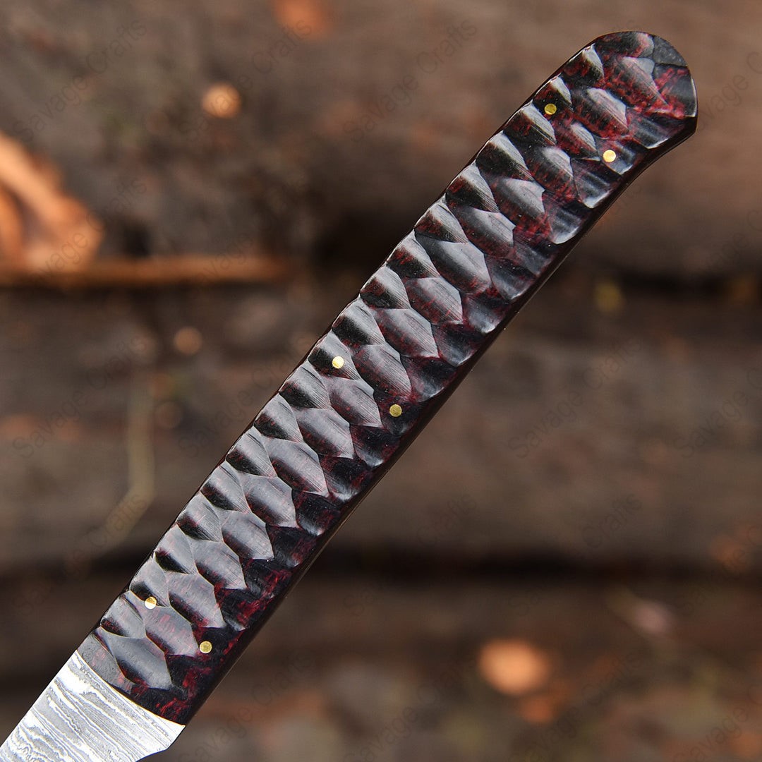 Because each knife is handcrafted using natural materials, the color, Damascus pattern, and overall appearance may vary. The knife you receive will be made with the same care and quality as the one shown, but its look may be slightly different.