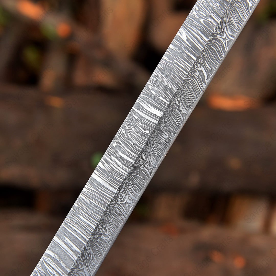 A sword made from Damascus steel is known for its distinctive beauty, historical significance, and well-rounded performance characteristics. Damascus steel is created by forging multiple layers of steel together, producing a blade with exceptional strength and a signature flowing or wavy pattern. This layered construction gives the sword a combination of toughness, flexibility, and excellent edge retention, making it less likely to chip or break under stress. The blade’s hardness allows it to hold a sharp edge for a long time, while its resilience helps absorb impact during use. Many Damascus swords also feature ornate, hand-crafted patterns and elegant handles, making them as visually impressive as they are functional.