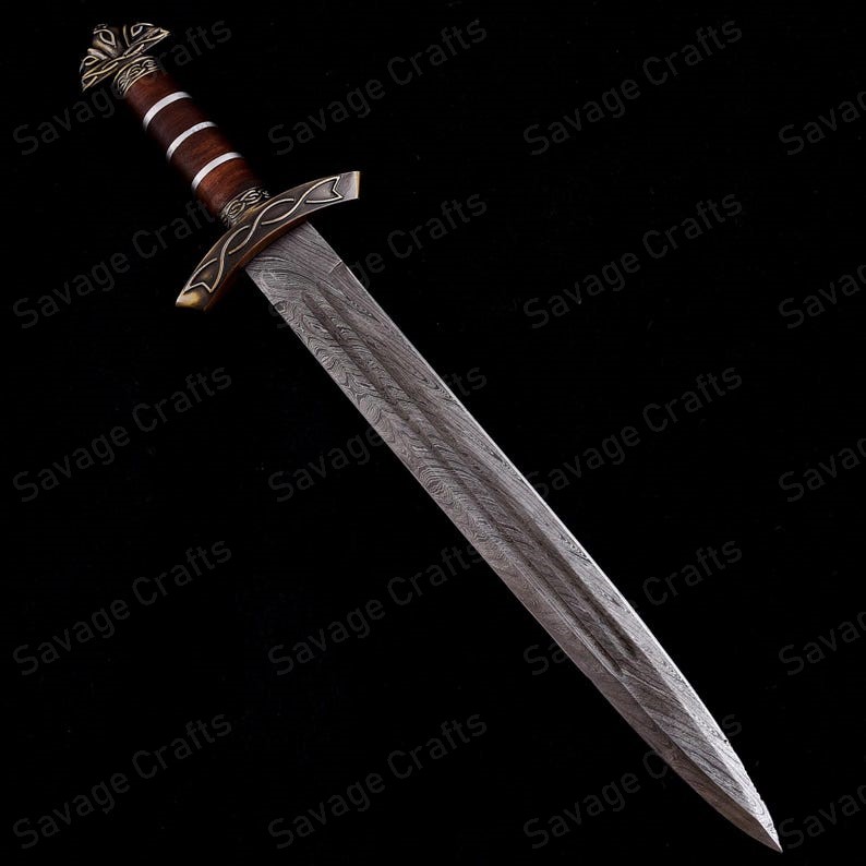 A sword made from Damascus steel is known for its distinctive beauty, historical significance, and well-rounded performance characteristics. Damascus steel is created by forging multiple layers of steel together, producing a blade with exceptional strength and a signature flowing or wavy pattern. This layered construction gives the sword a combination of toughness, flexibility, and excellent edge retention, making it less likely to chip or break under stress. The blade’s hardness allows it to hold a sharp edge for a long time, while its resilience helps absorb impact during use. Many Damascus swords also feature ornate, hand-crafted patterns and elegant handles, making them as visually impressive as they are functional.