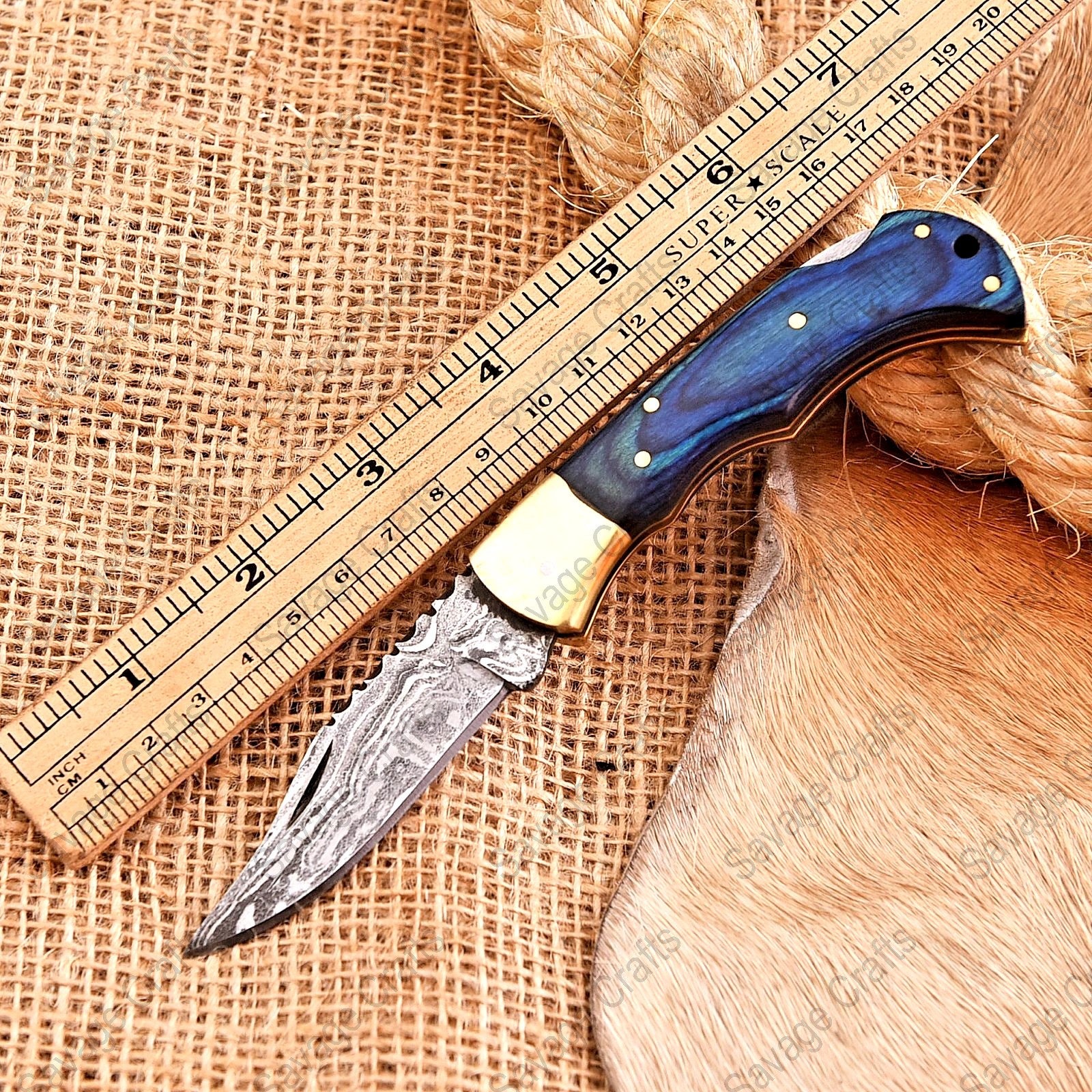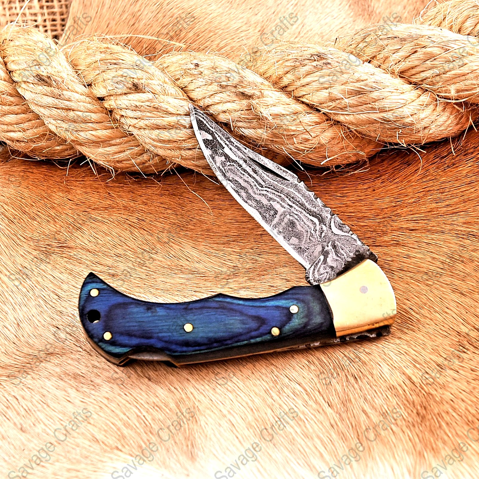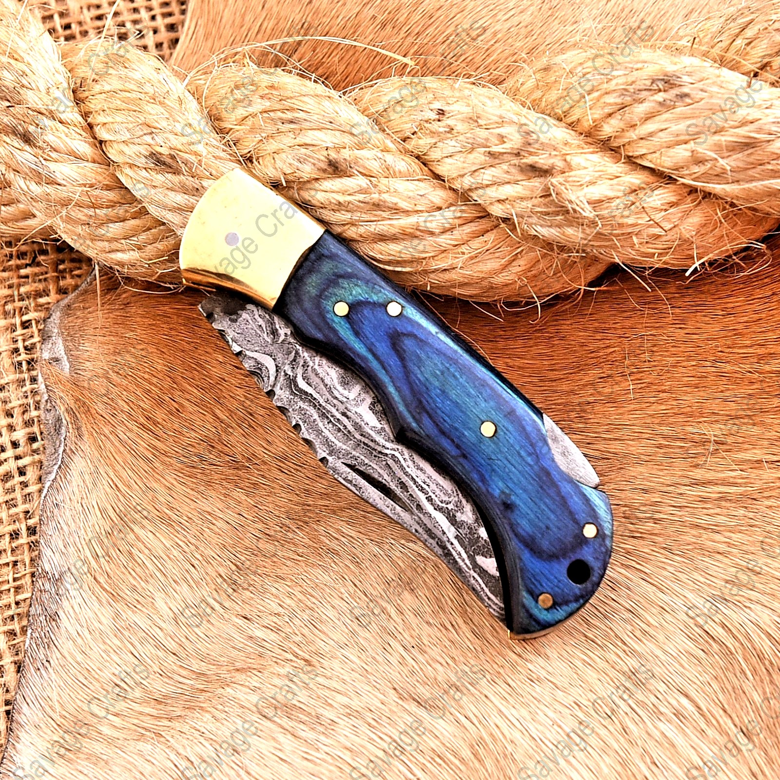 Crafted with an ultra-sharp, hand-forged Damascus steel blade, this folding knife exemplifies the enduring value of traditional metalworking. Damascus steel offers superior durability compared to standard high-carbon steels and allows for easier sharpening, thanks to its balanced blend of high-chromium and alloying elements.