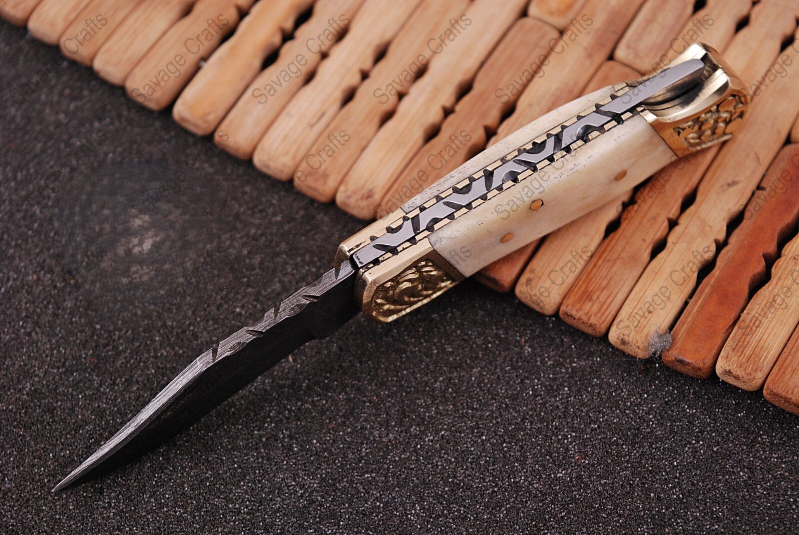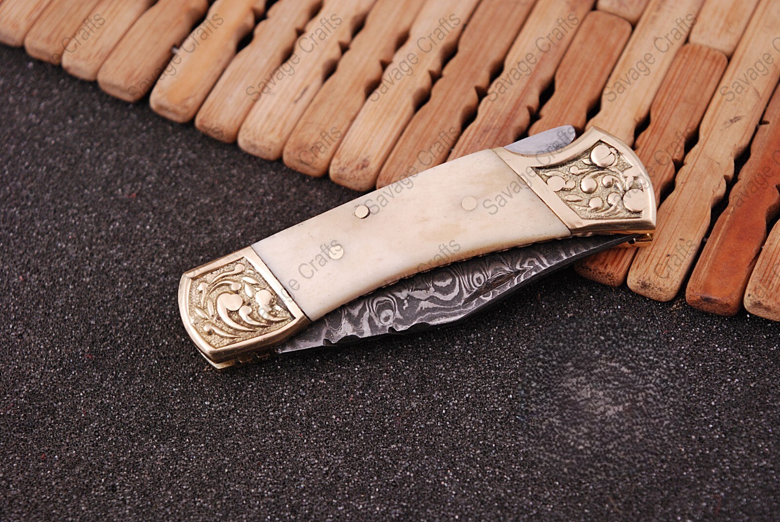 7.10″ Damascus Steel Folding/Pocket Knife – Bone Handle