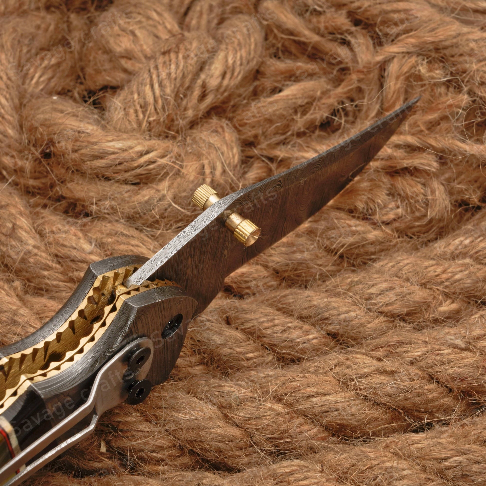 Crafted with an ultra-sharp, hand-forged Damascus steel blade, this folding knife exemplifies the enduring value of traditional metalworking. Damascus steel offers superior durability compared to standard high-carbon steels and allows for easier sharpening, thanks to its balanced blend of high-chromium and alloying elements.