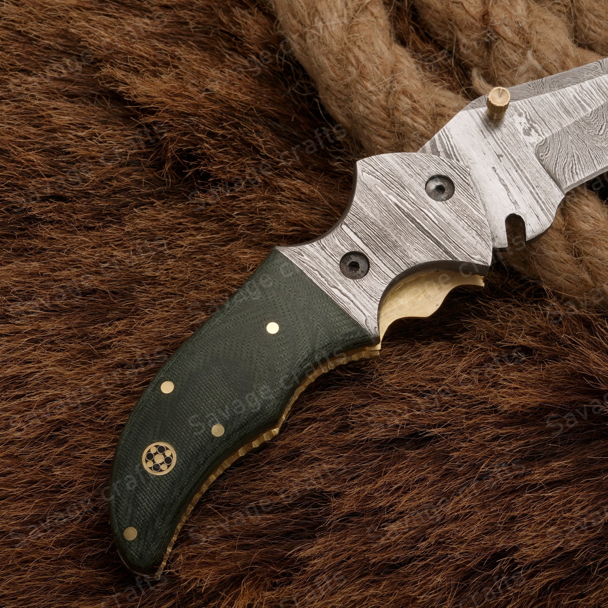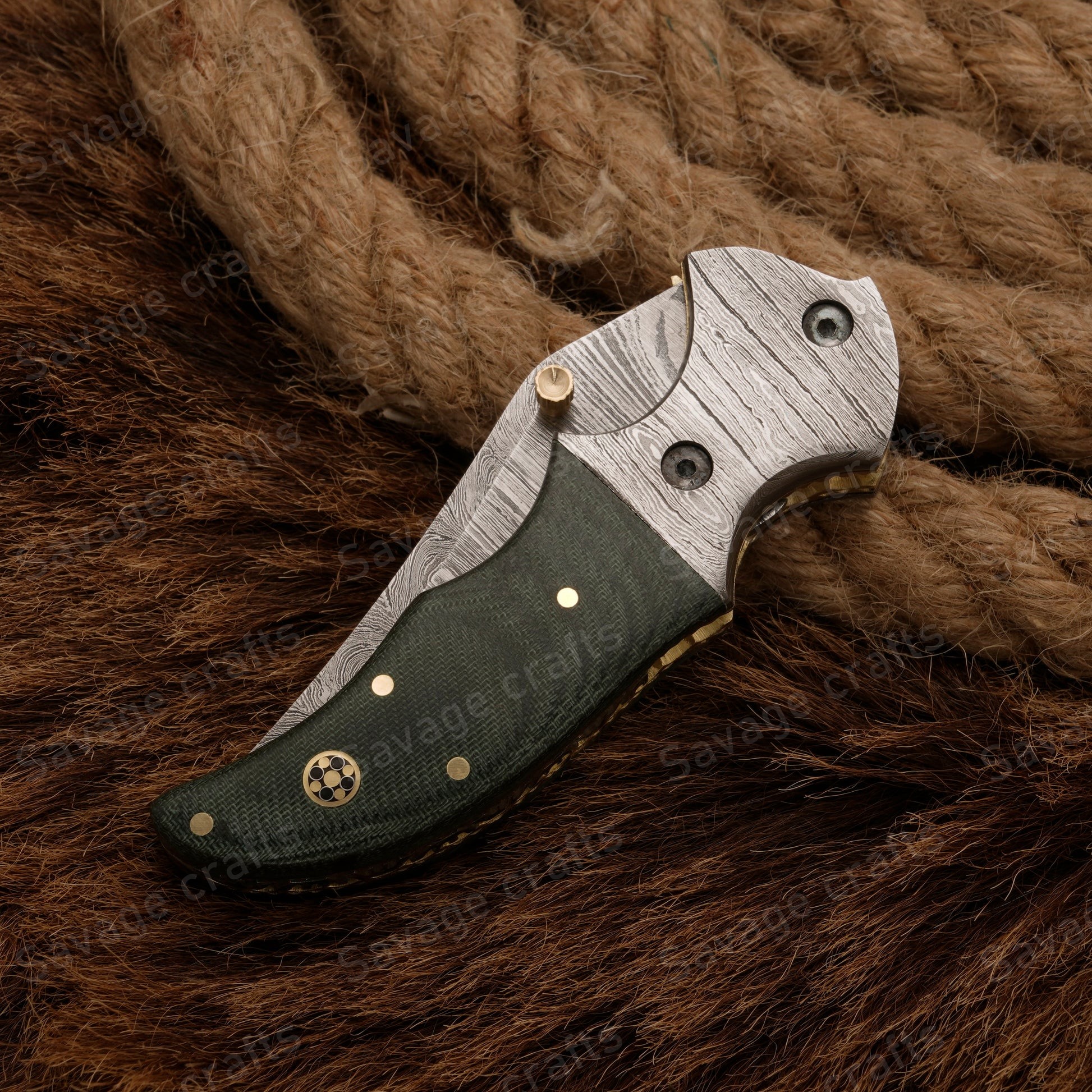 Crafted with an ultra-sharp, hand-forged Damascus steel blade, this folding knife exemplifies the enduring value of traditional metalworking. Damascus steel offers superior durability compared to standard high-carbon steels and allows for easier sharpening, thanks to its balanced blend of high-chromium and alloying elements.