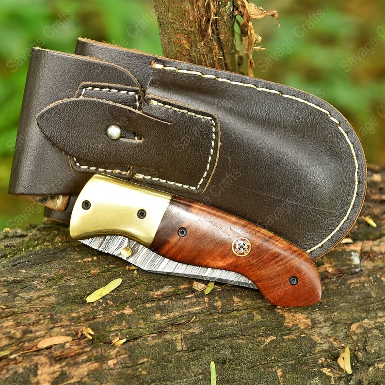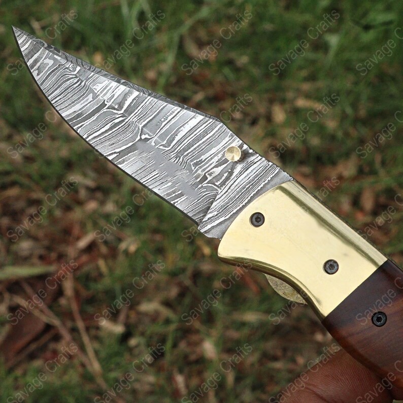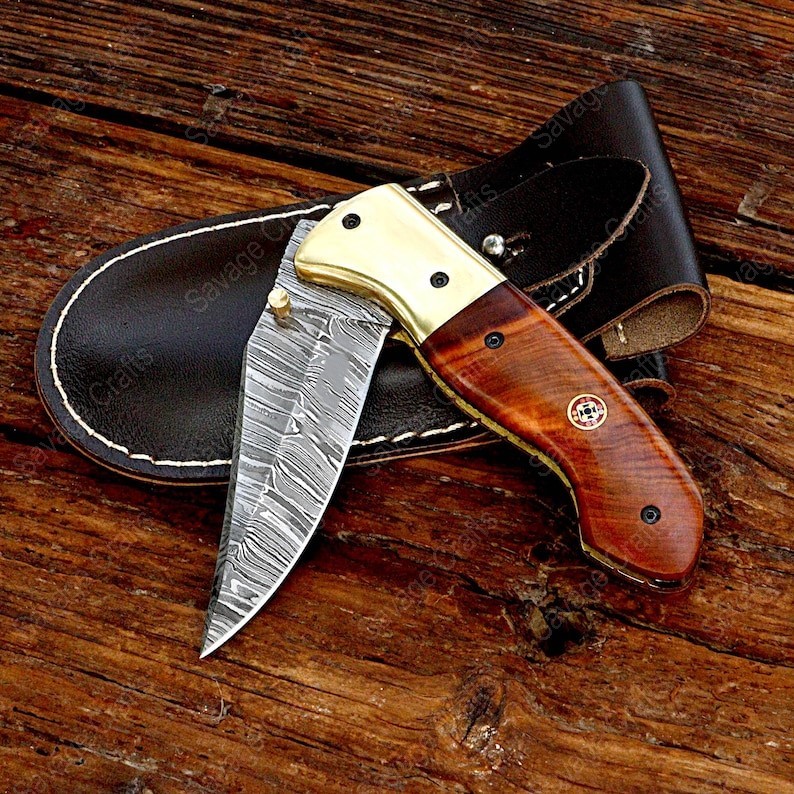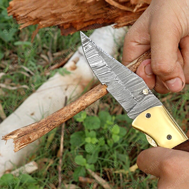 Crafted with an ultra-sharp, hand-forged Damascus steel blade, this folding knife exemplifies the enduring value of traditional metalworking. Damascus steel offers superior durability compared to standard high-carbon steels and allows for easier sharpening, thanks to its balanced blend of high-chromium and alloying elements.