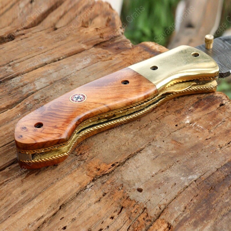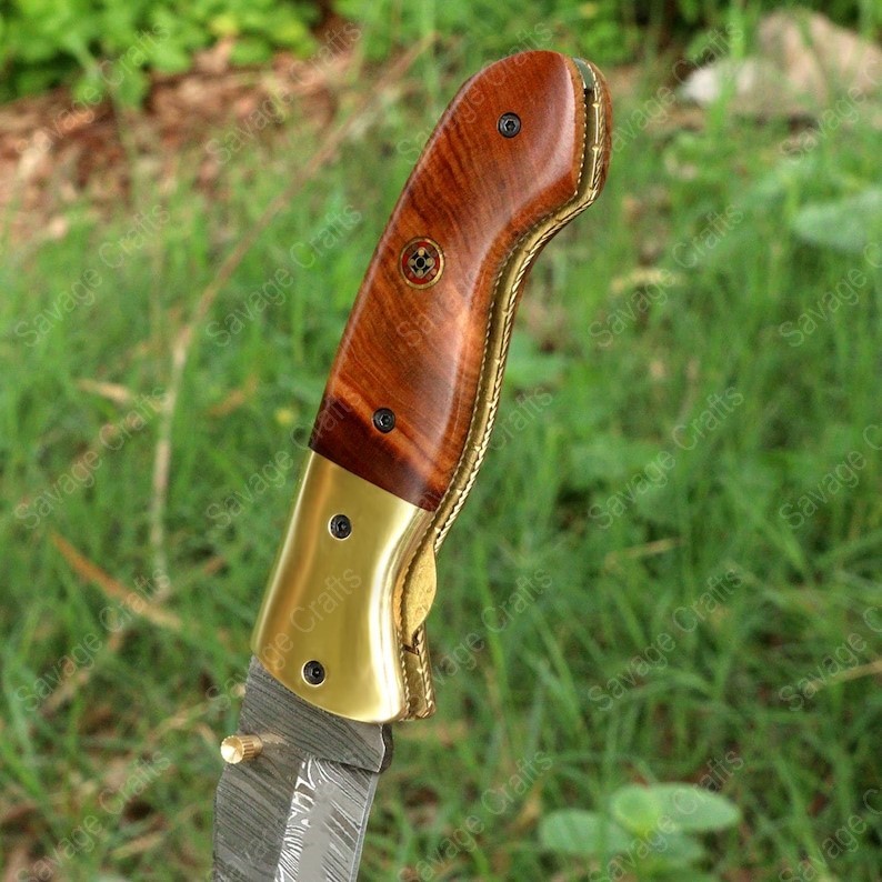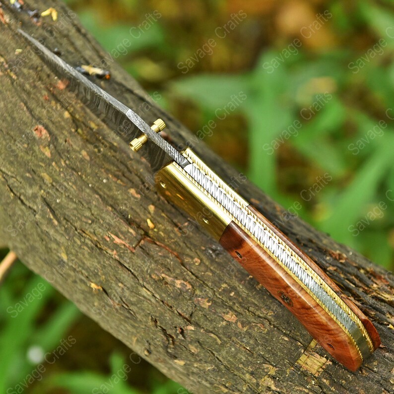 7.5″ Handmade Damascus Steel Folding/Pocket Knife – Wood Handle