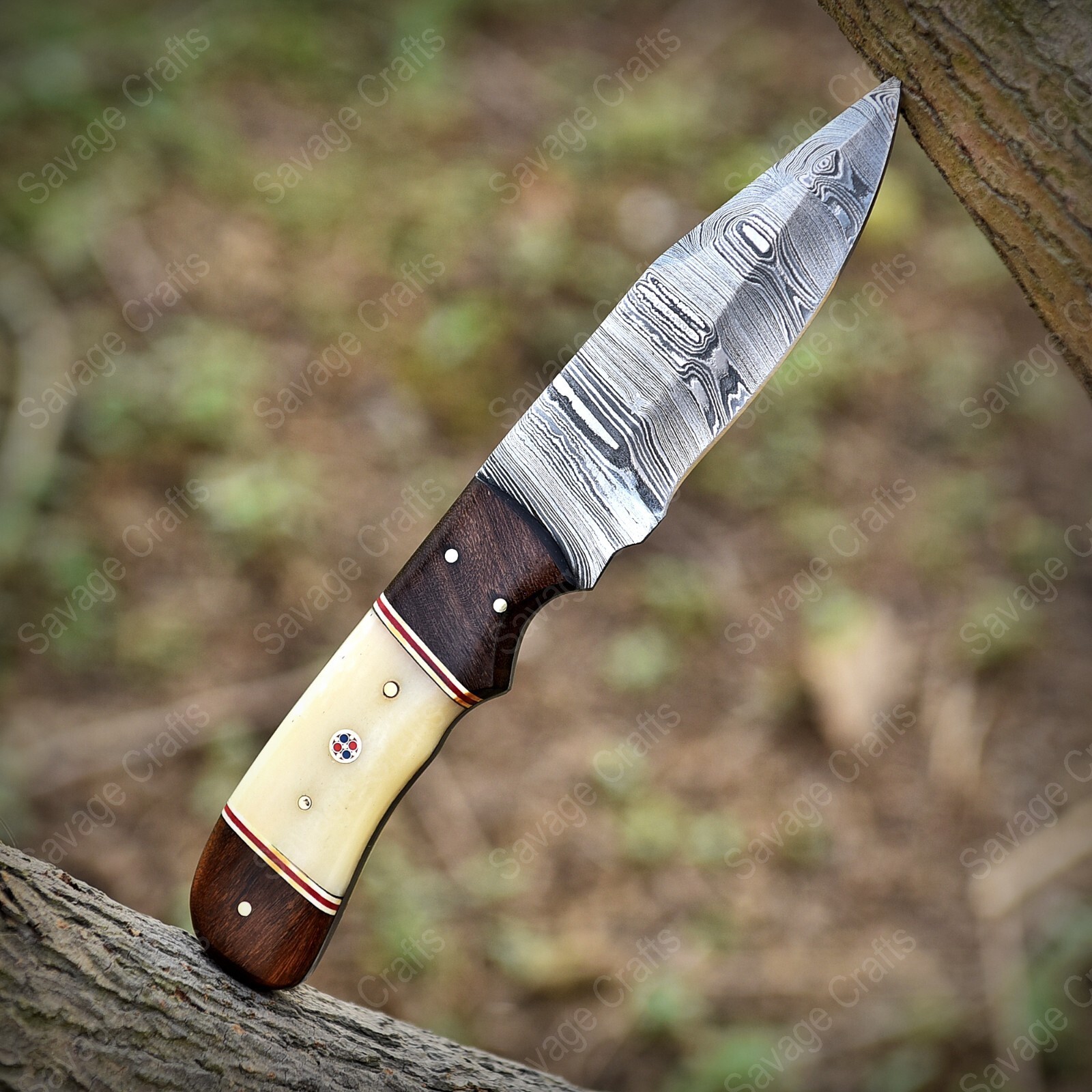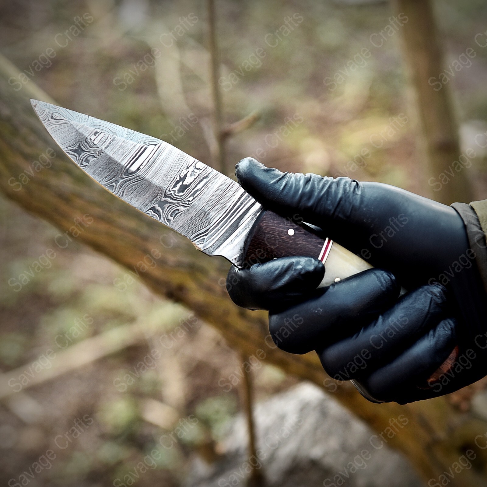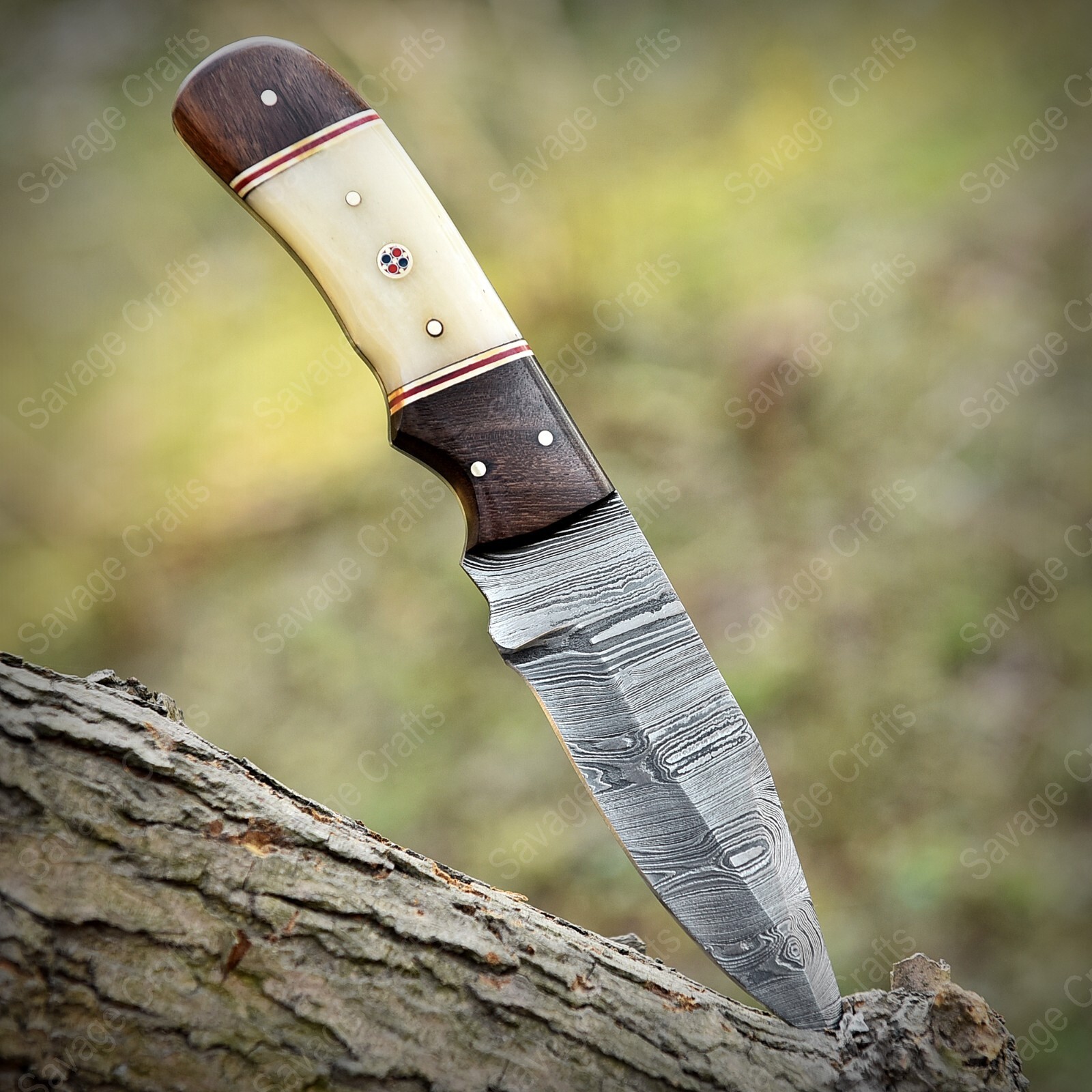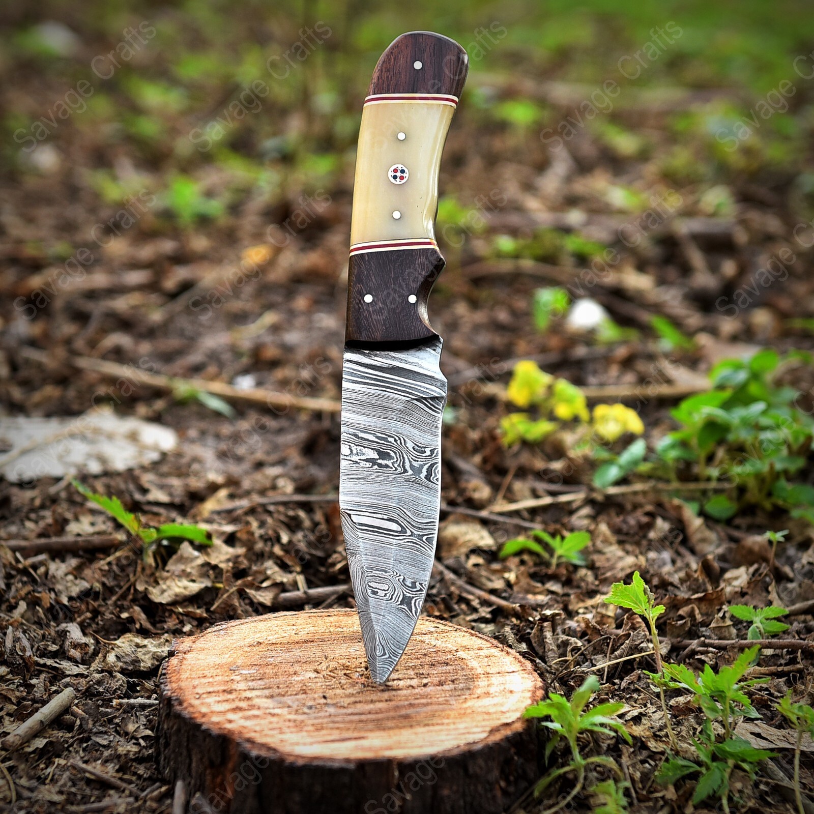 8″ Damascus Steel Skinner Knife – Wood & Bone