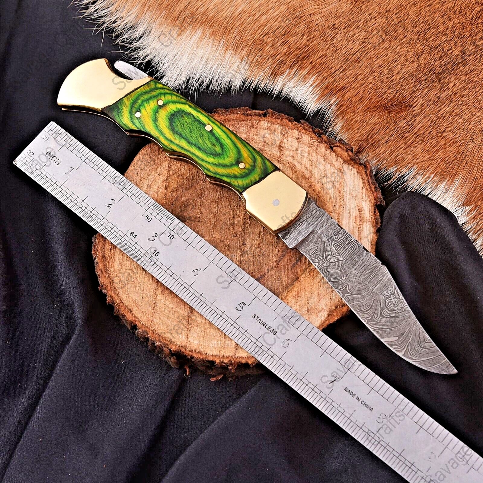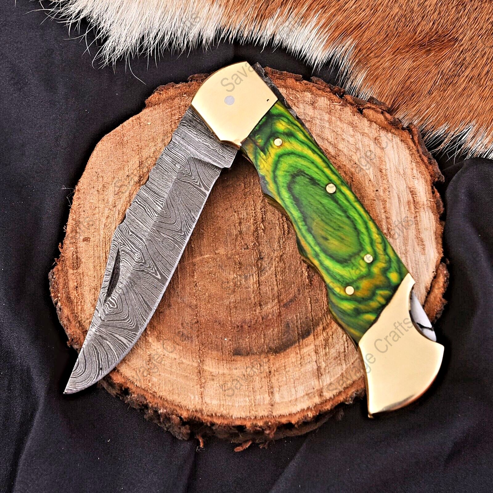 Crafted with an ultra-sharp, hand-forged Damascus steel blade, this folding knife exemplifies the enduring value of traditional metalworking. Damascus steel offers superior durability compared to standard high-carbon steels and allows for easier sharpening, thanks to its balanced blend of high-chromium and alloying elements.