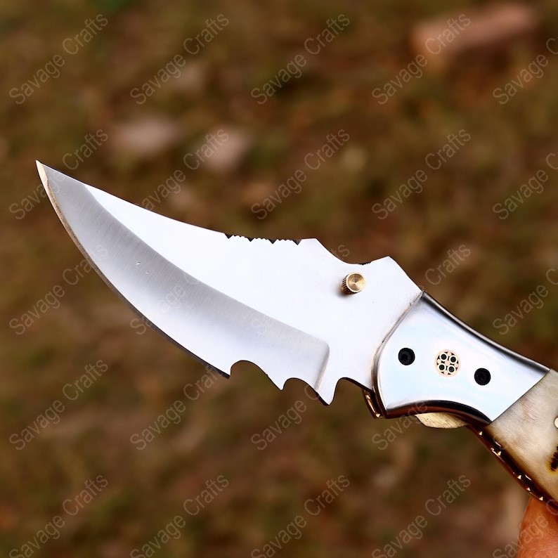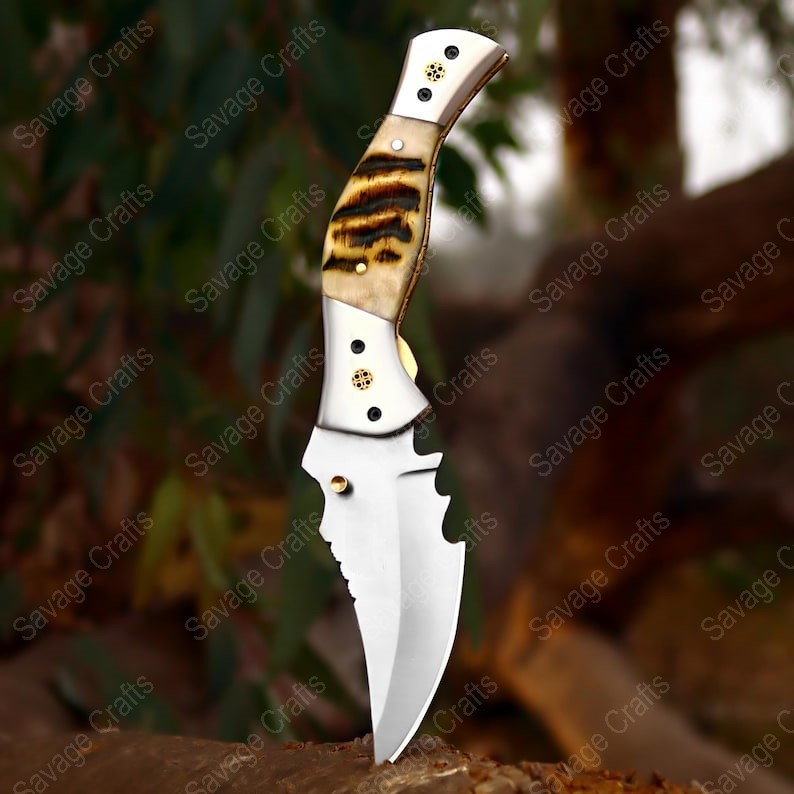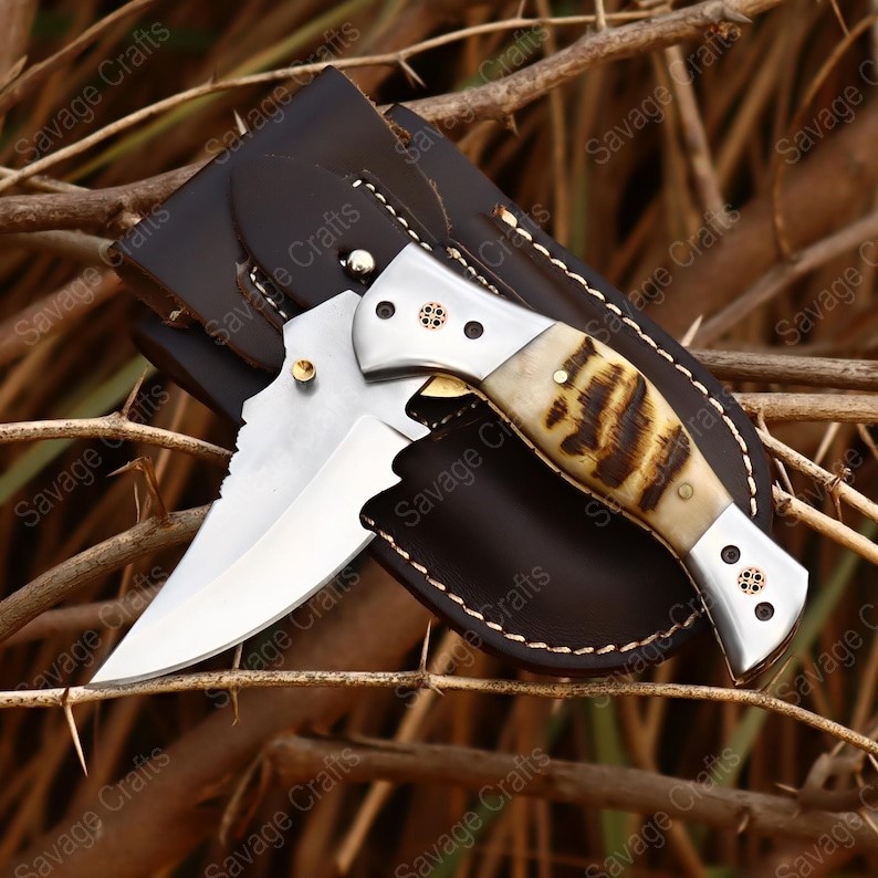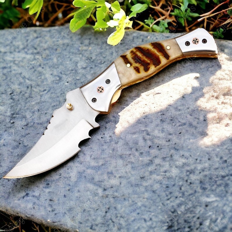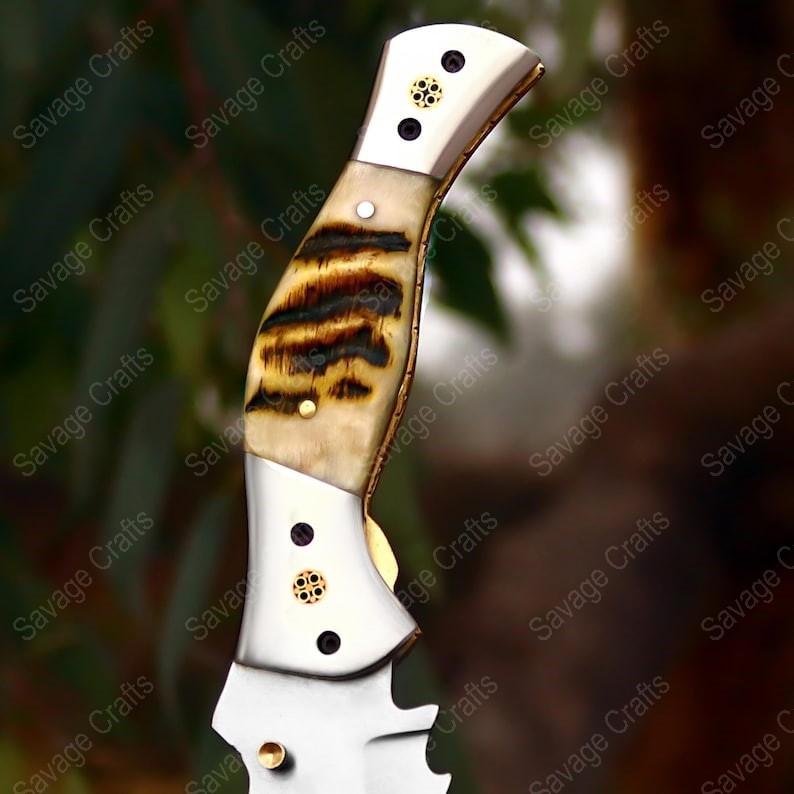 8.5″ Handmade D2 Tool Steel Folding/Pocket Knife – Ram Horn