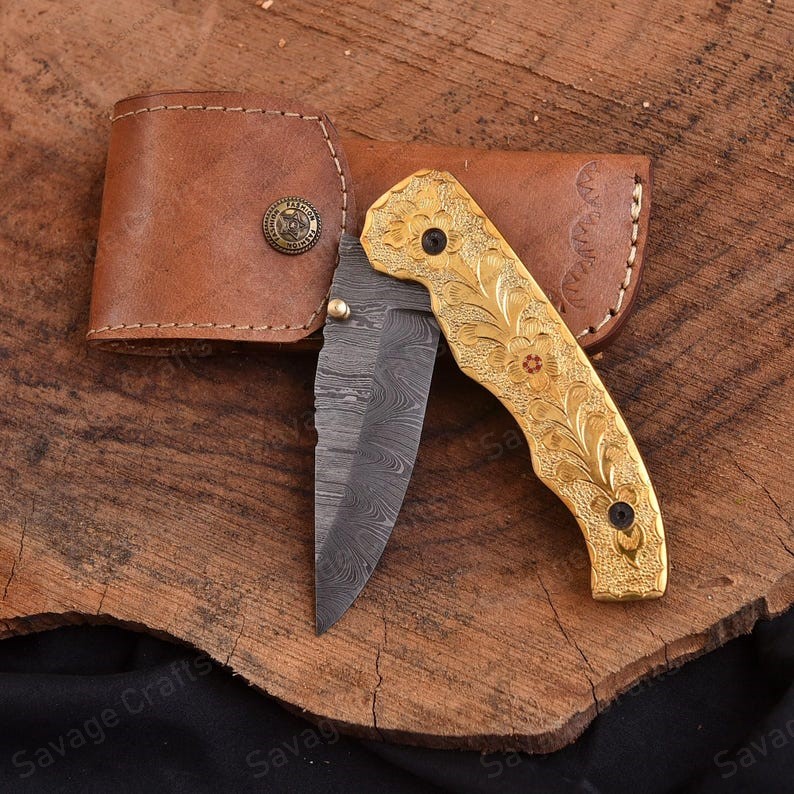 Crafted with an ultra-sharp, hand-forged Damascus steel blade, this folding knife exemplifies the enduring value of traditional metalworking. Damascus steel offers superior durability compared to standard high-carbon steels and allows for easier sharpening, thanks to its balanced blend of high-chromium and alloying elements.