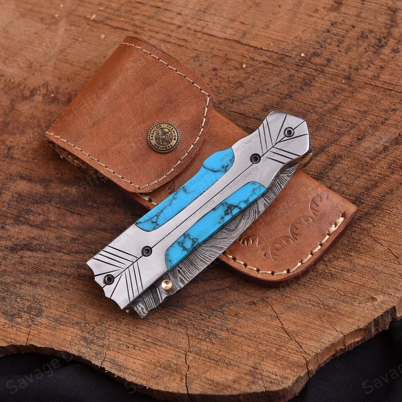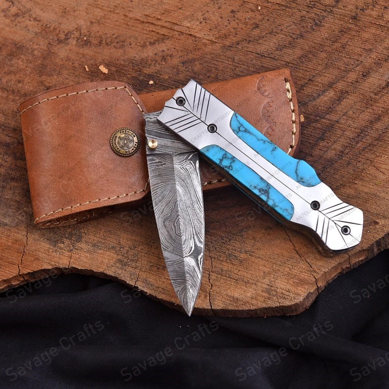 Crafted with an ultra-sharp, hand-forged Damascus steel blade, this folding knife exemplifies the enduring value of traditional metalworking. Damascus steel offers superior durability compared to standard high-carbon steels and allows for easier sharpening, thanks to its balanced blend of high-chromium and alloying elements.