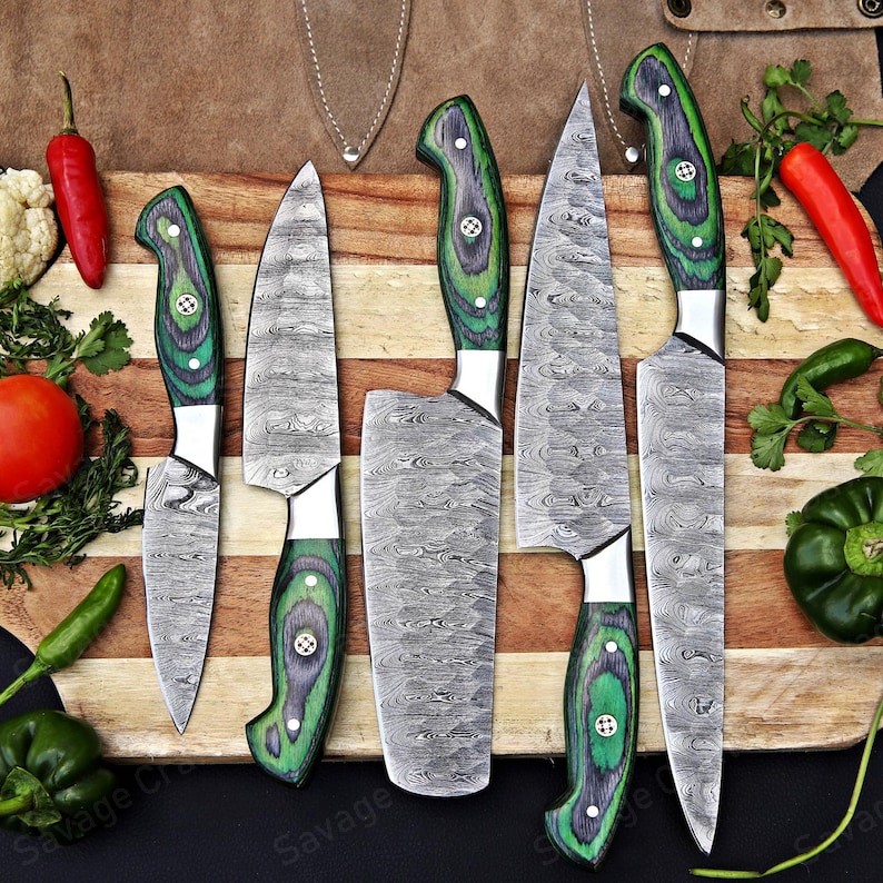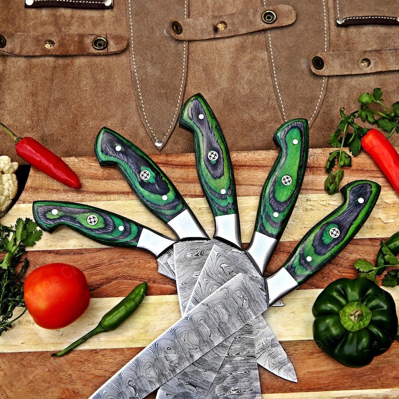 Set of 5 – Damascus Steel Chef Knife Set – Wood Handle