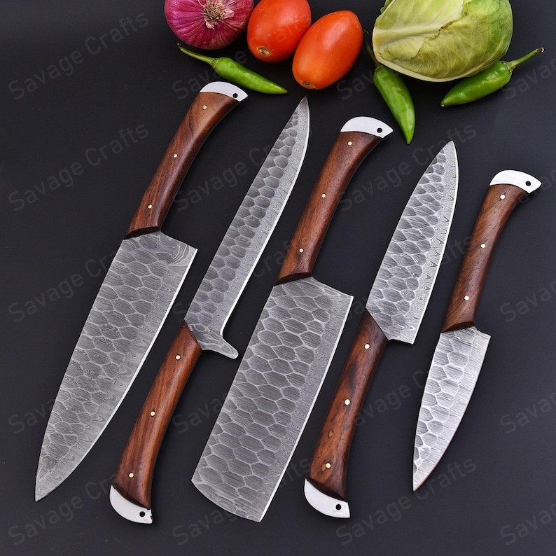 Set of 5 – Damascus Steel Chef Knife Set – Wood Handle