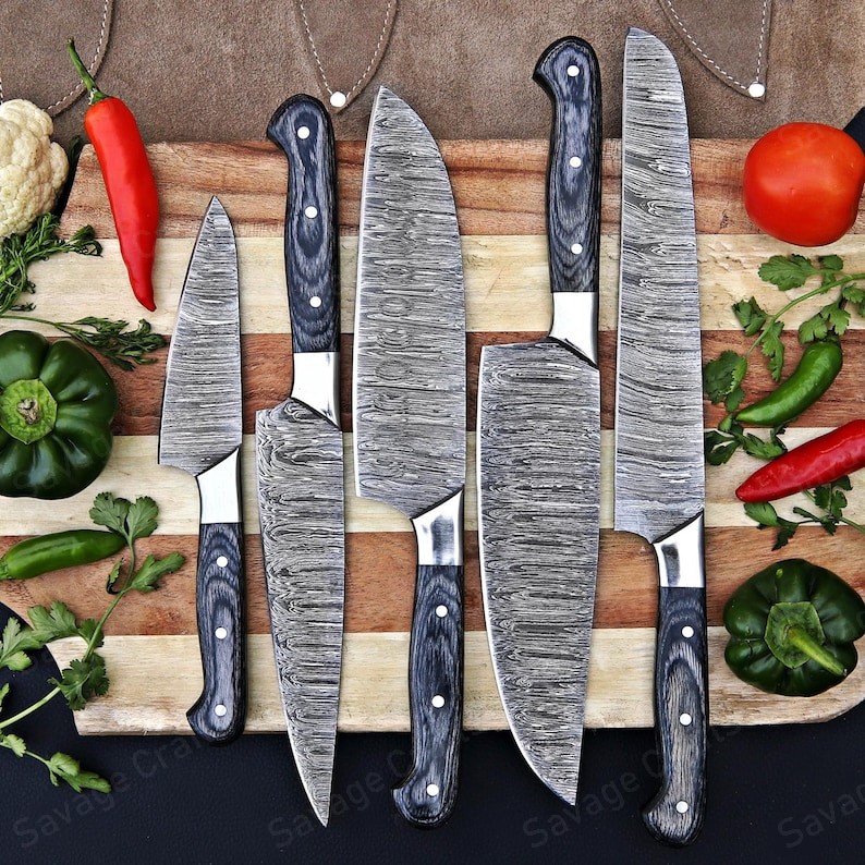 Set of 5 – Damascus Steel Chef Knife Set – Wood Handle