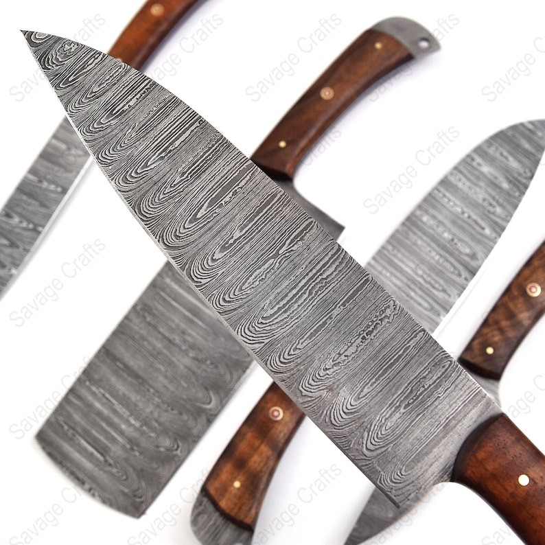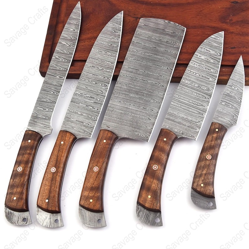 Set of 5 – Damascus Steel Chef Knife Set – Wood handle