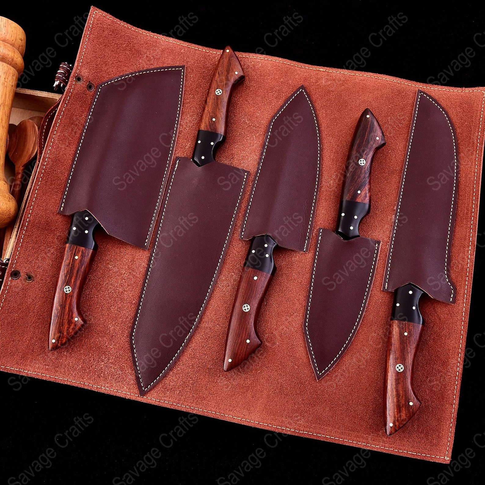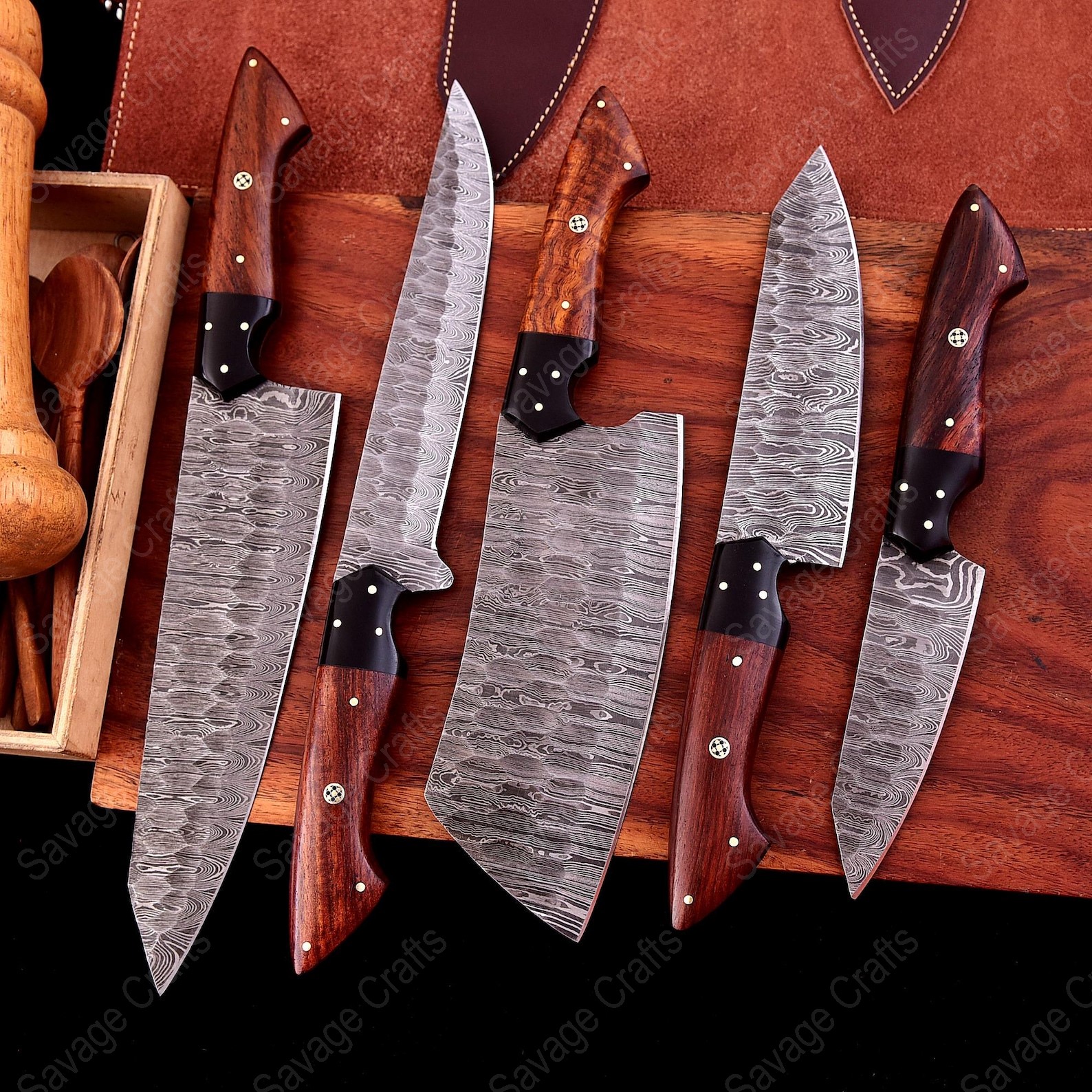 Set of 5 – Damascus Steel Chef Knife Set – Wood & Micarta